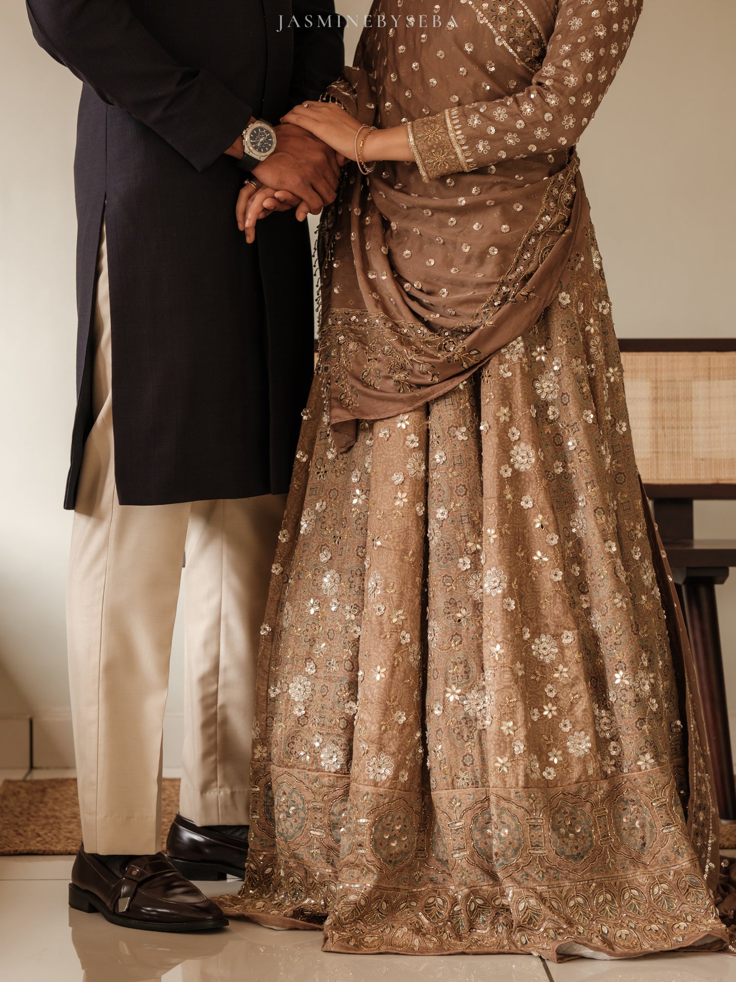 Custom made Ajrakh hand dyed hand block printed modal silk anarakali set with hand embroidry