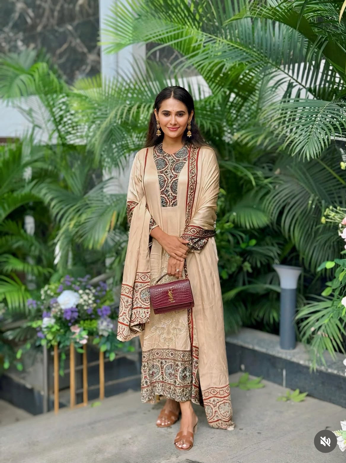 Ajrakh hand dyed hand block printed velvet silk panel cut salwar set with hand embroidry