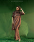 Ajrakh hand dyed and hand block printed premium cotton straight coord set in brown