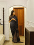 Charcoal black pure handloom gajji silk handworked saree with cutbeads, zari and sequence handwork